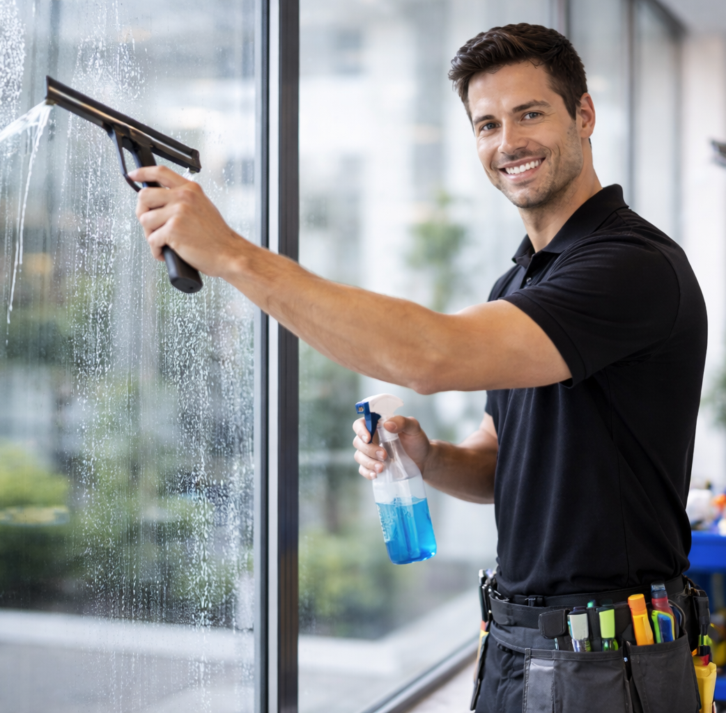 Sorgen Sie für klare Sicht und einen gepflegten Eindruck mit unserer professionellen Glasreinigung. Wir entfernen zuverlässig Schmutz, Staub und Ablagerungen von Fenstern, Glasflächen und Glasfassaden. Mit viel Sorgfalt und streifenfreien Ergebnissen bringen wir Ihre Glasflächen wieder zum Glänzen und sorgen für ein helles, freundliches Erscheinungsbild Ihrer Räumlichkeiten.